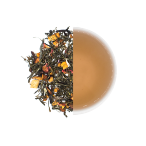 Groene thee 65%, gember 22%, hibiscus 6%, appel 4%, sinaasbloesem 3%, saffloer & natuurlijk perzikaroma